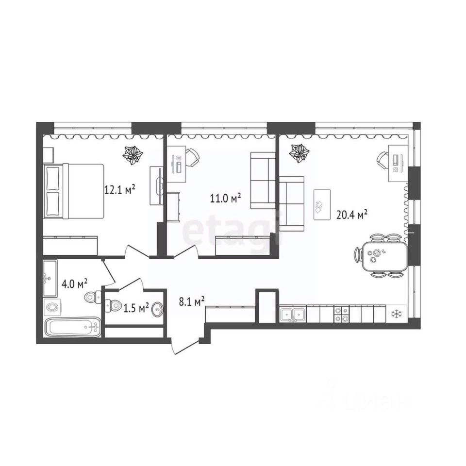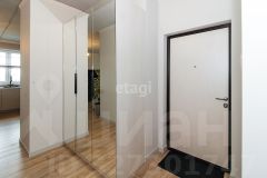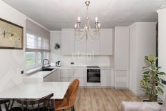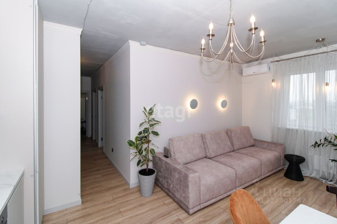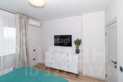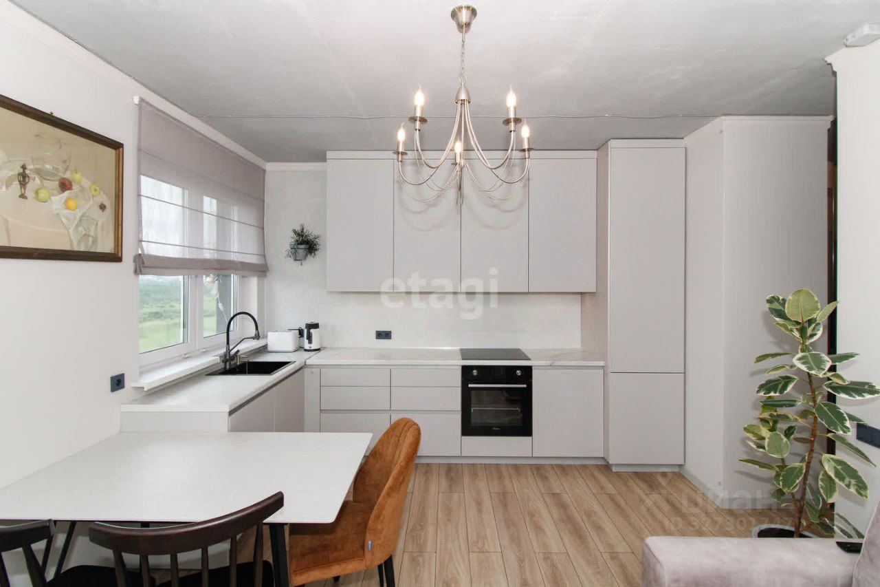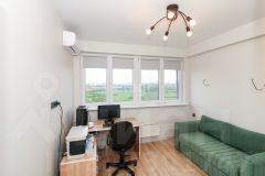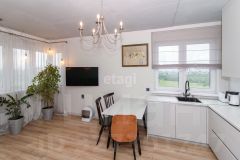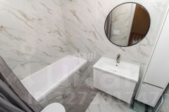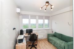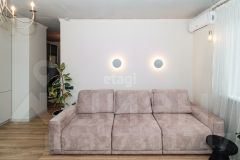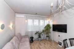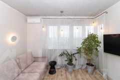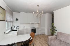 В квартире выполнен качественный современный ремонт в светлых оттенках. Ванная комната оформлена керамогранитом, установлена вся необходимая сантехника. В кухне-гостиной остается встроенный гарнитур с техникой и мебель, изюминкой является угловое остекление, благодаря чему комната очень светлая и теплая.