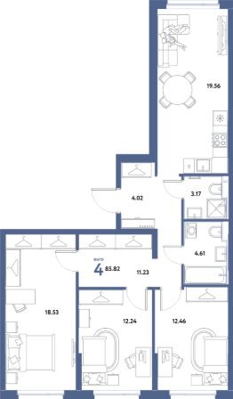 Продаётся 4-комнатная квартира в строящемся доме (Дом Тенерифе (ГП-2Я)), срок сдачи: IV-кв. 2027, общей площадью 85.82 кв.м., на 10 этаже. Новый жилой комплекс "Остров-сад" от Специализированного застройщика "Страна. Коммунистическая" расположен по адресу: г. Тюмень, по ул. Ярославская.