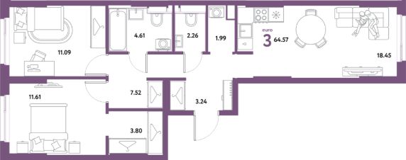 Продаётся 3-комнатная квартира в строящемся доме (Дом Тенерифе (ГП-2Я)), срок сдачи: IV-кв. 2027, общей площадью 64.57 кв.м., на 3 этаже. Новый жилой комплекс "Остров-сад" от Специализированного застройщика "Страна. Коммунистическая" расположен по адресу: г. Тюмень, по ул. Ярославская.