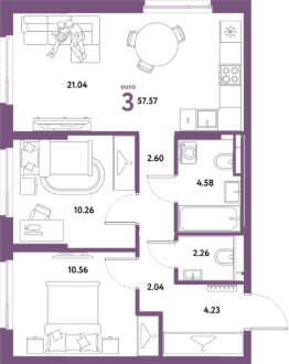 Продаётся 3-комнатная квартира в строящемся доме (Дом Тенерифе (ГП-2Я)), срок сдачи: IV-кв. 2027, общей площадью 57.57 кв.м., на 4 этаже. Новый жилой комплекс "Остров-сад" от Специализированного застройщика "Страна. Коммунистическая" расположен по адресу: г. Тюмень, по ул. Ярославская.