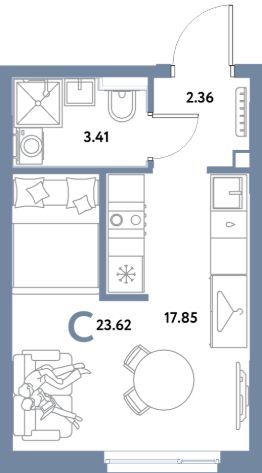 Продаётся студия в строящемся доме (Дом Тенерифе (ГП-2Я)), срок сдачи: IV-кв. 2027, общей площадью 23.62 кв.м., на 7 этаже. Новый жилой комплекс "Остров-сад" от Специализированного застройщика "Страна. Коммунистическая" расположен по адресу: г. Тюмень, по ул. Ярославская.