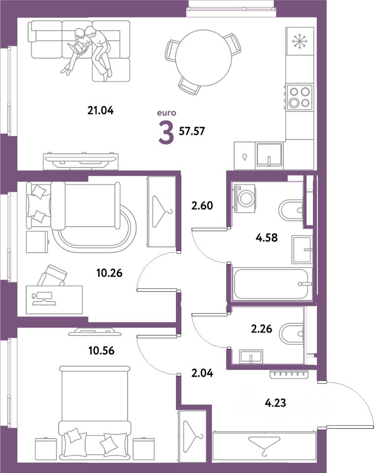 Продаётся 3-комнатная квартира в строящемся доме (Дом Тенерифе (ГП-2Я)), срок сдачи: IV-кв. 2027, общей площадью 57.57 кв.м., на 8 этаже. Новый жилой комплекс "Остров-сад" от Специализированного застройщика "Страна. Коммунистическая" расположен по адресу: г. Тюмень, по ул. Ярославская.