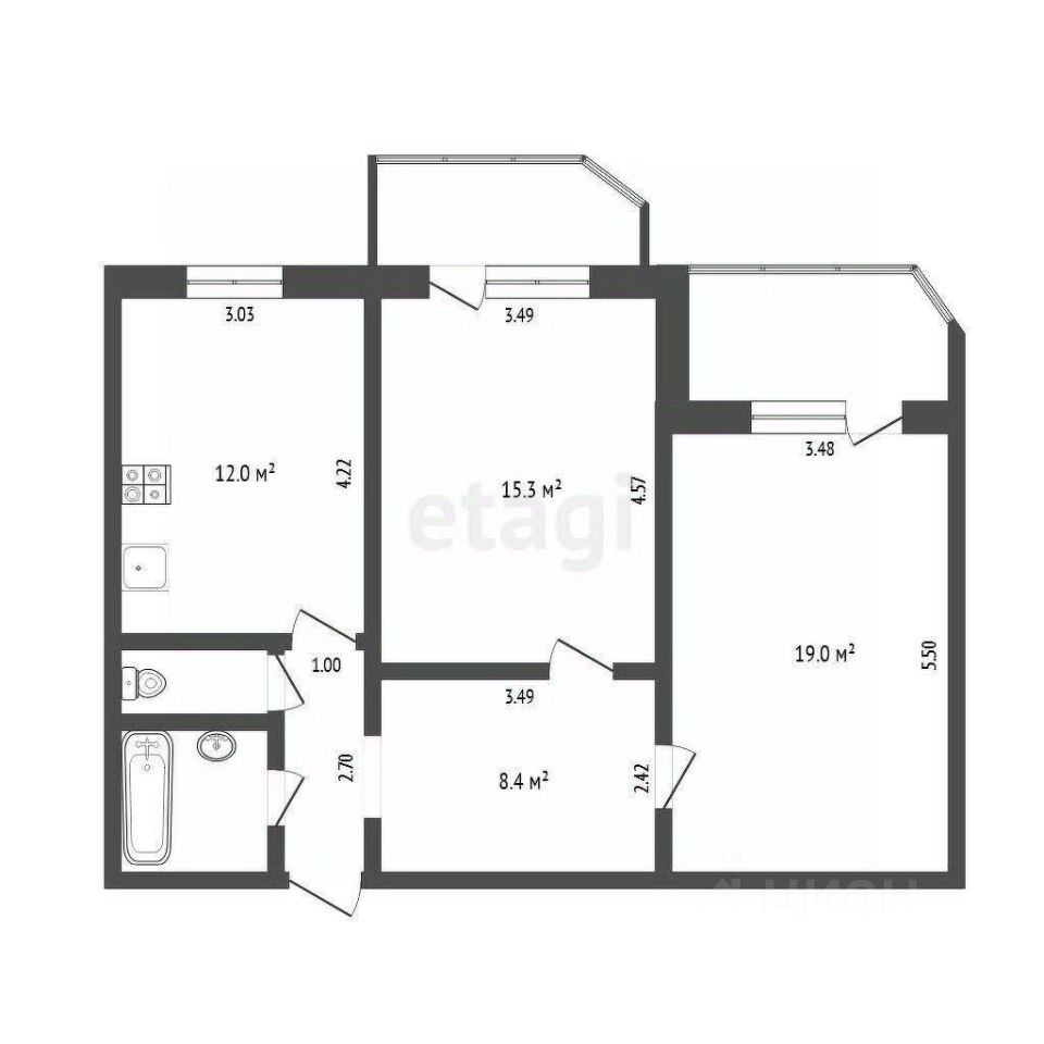 Два балкона застеклены.