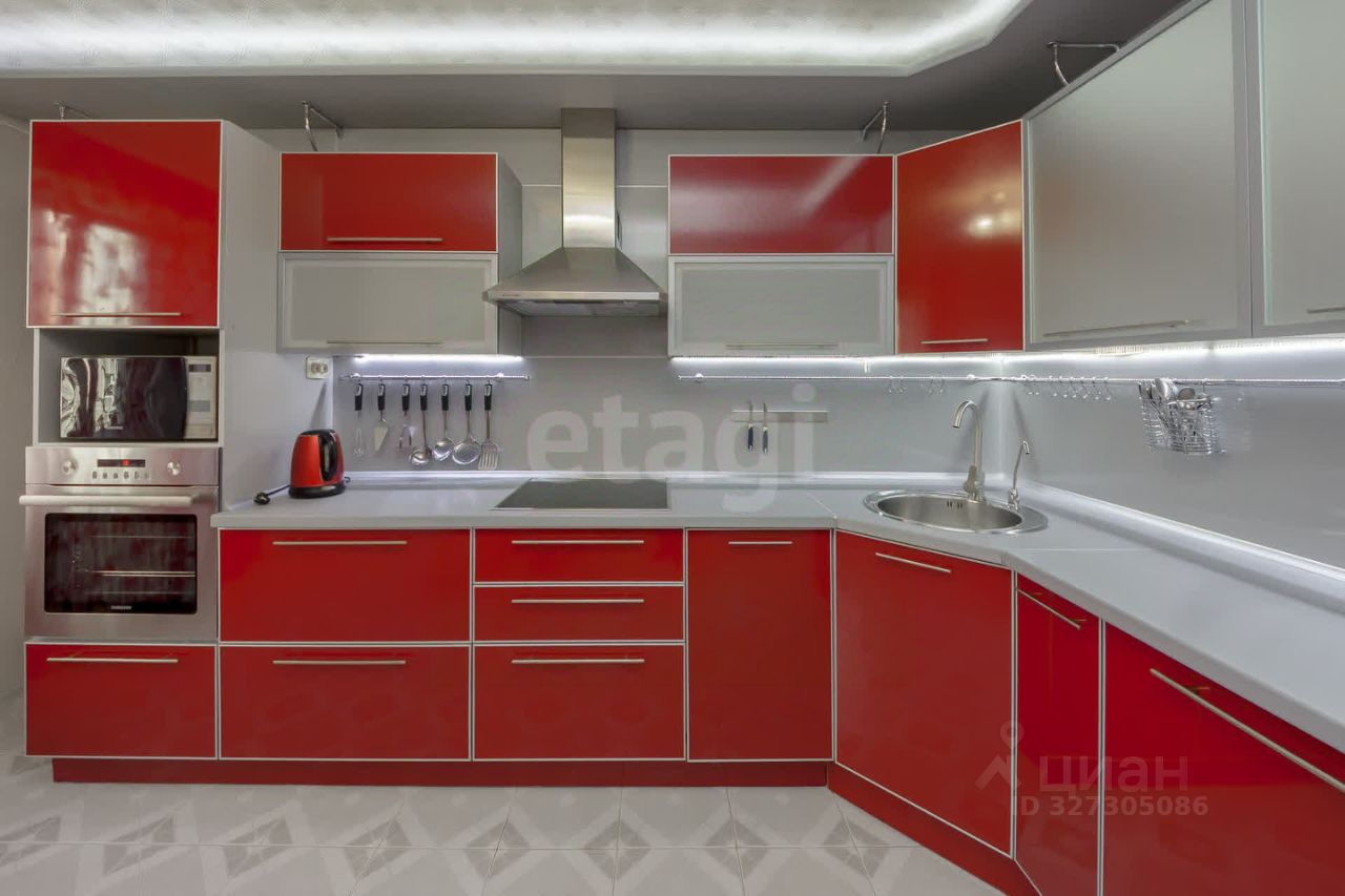 Сердце квартиры - это кухня, с ярким кухонным гарнитуром, который остается при продаже, со встроенной техникой.