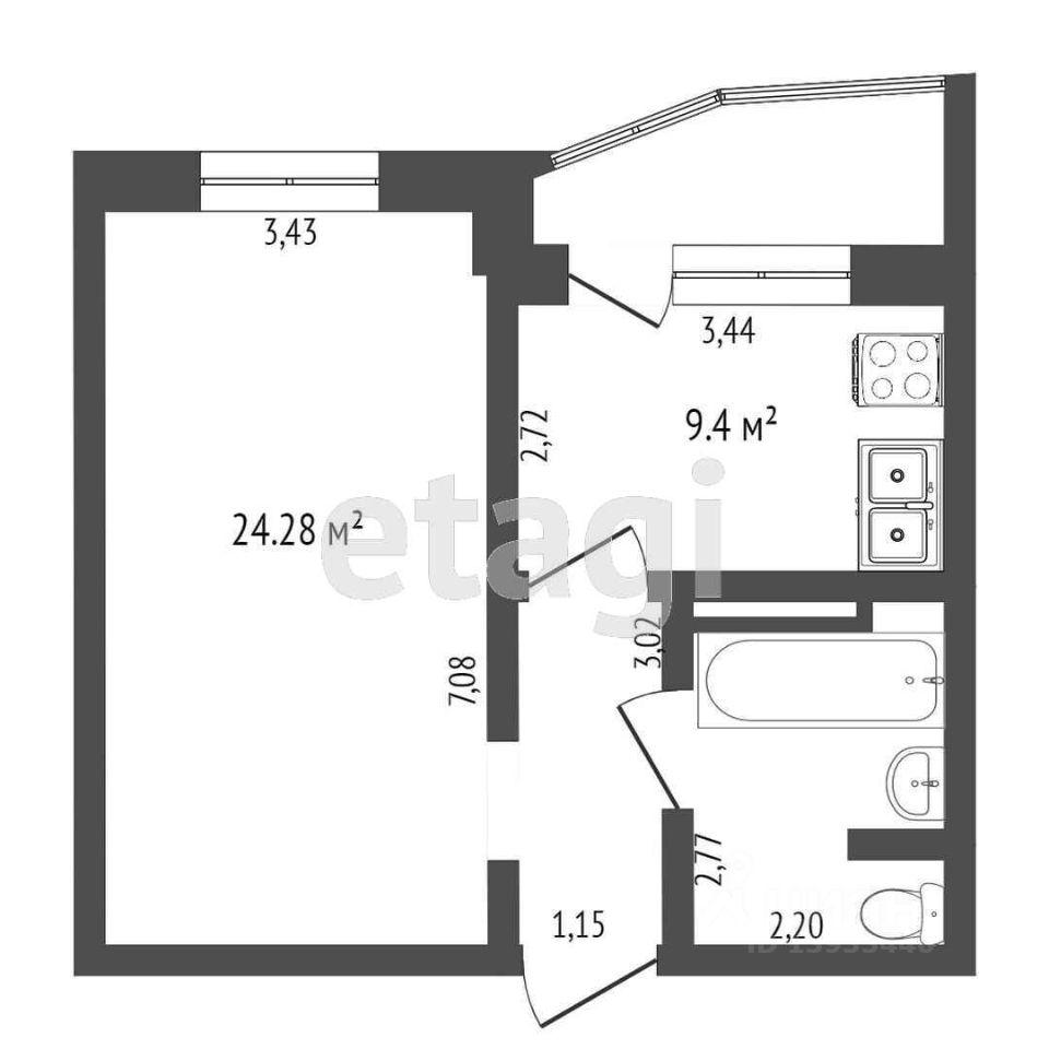 Кухня оснащена выходом на балкон, что создает дополнительное пространство для хранения, большой совмещённый санузел обеспечивает комфорт и удобство.