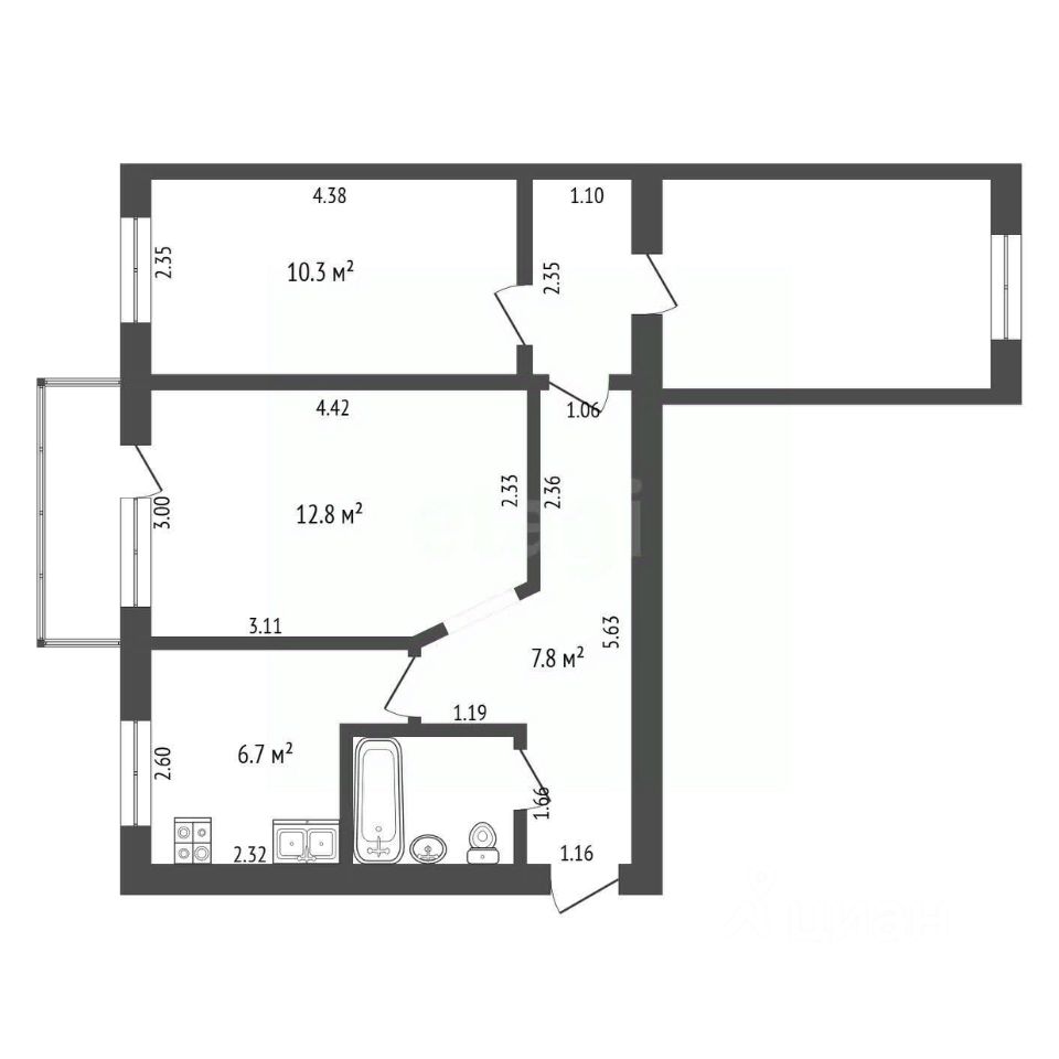 Продается трехкомнатная квартира в районе с развитой инфраструктурой, в 5 минутах езды от центра города Тюмень.