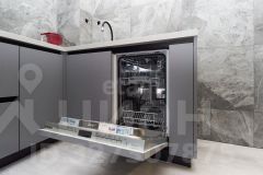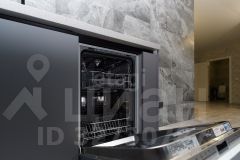 - варочная панель, духовой шкаф, вытяжка, микроволновая печь, посудомоечная машина, а также холодильник и стиральная машина. Отделка выполнена практичными материалами: