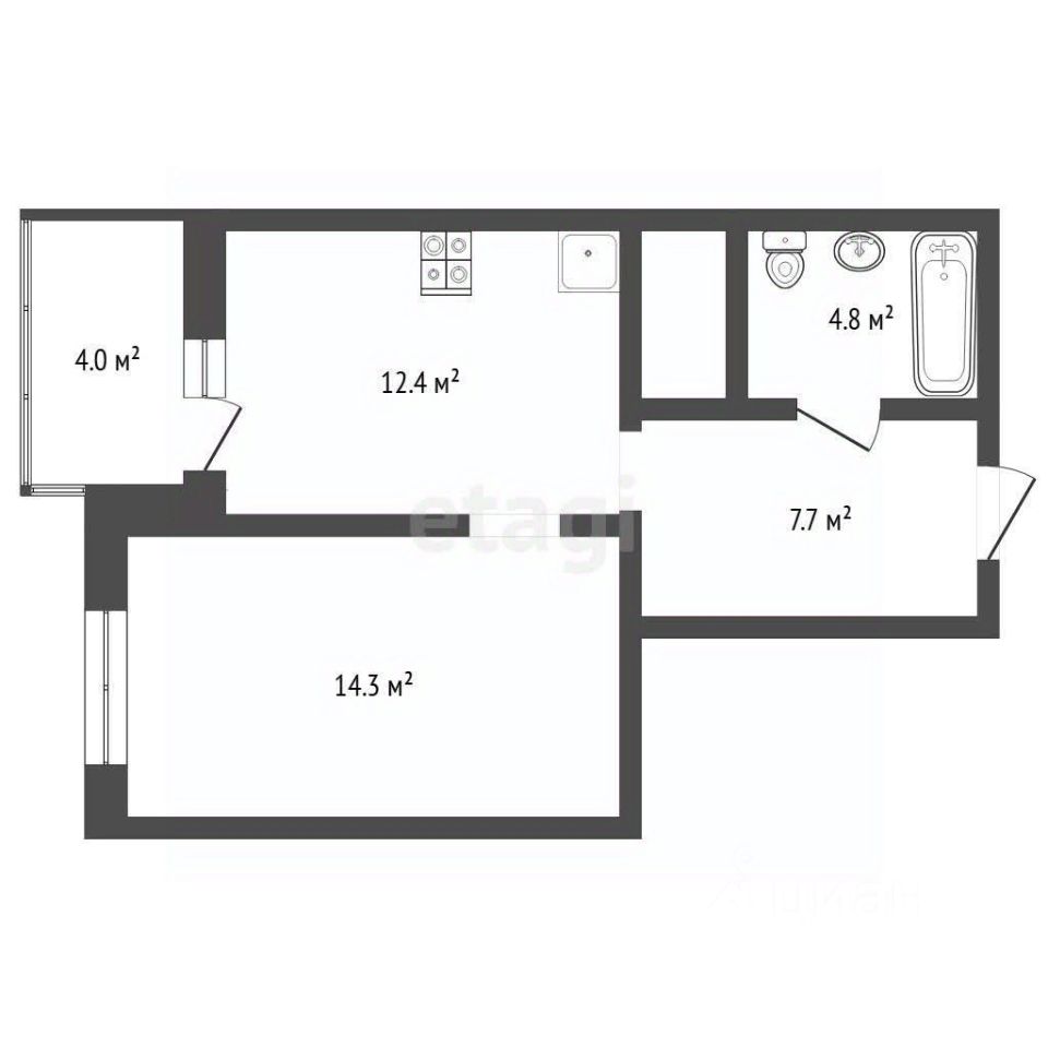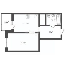 Эта стильная 1-комнатная квартира площадью 37,3 м² с высотой потолка 2,7 м ждет своего нового владельца:
