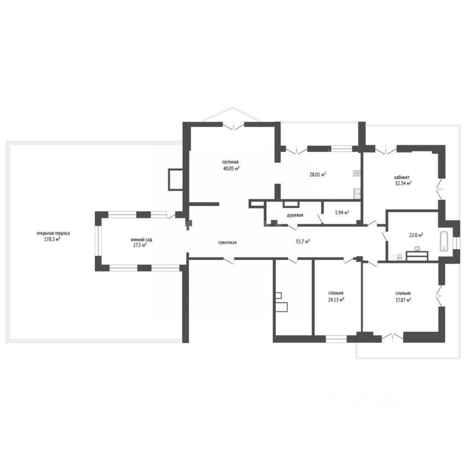 Просторная терраса (170 кв.м.) с выходом из собственного зимнего сада открывает великолепные виды на город и становится прекрасным местом для вечерних встреч или утреннего кофе.