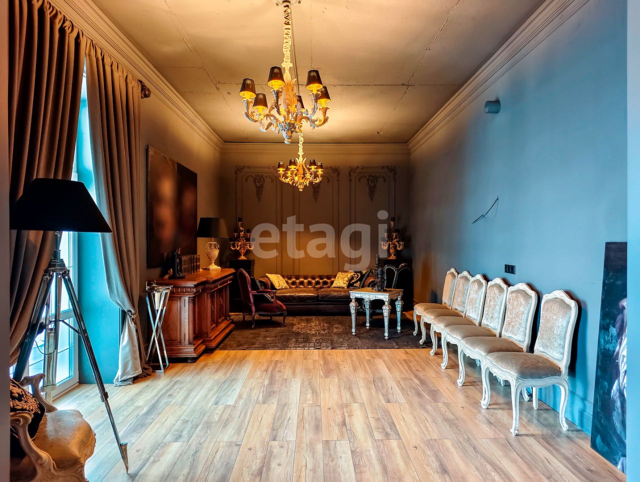 Целостность и наполненность интерьера придают тщательно подобранная мягкая мебель элитных, премиальных фабрик Eichholtz и Roberto Giovannini, а также изысканные предметы декора. Уютные диваны с подушками и стильные кресла с декоративными элементами создают идеальные условия для общения с друзьями или уединения с книгой.