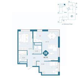 Просторная трешка с окнами на две стороны. В квартире просторная прихожая с нищами под вместительные шкафы для хранения. Две светлых спальни. Гостиная площадью более 20 м² с угловым остеклением, нишей для приготовления, обеденной и гостиной зонами, а также нишей для рабочего места.
