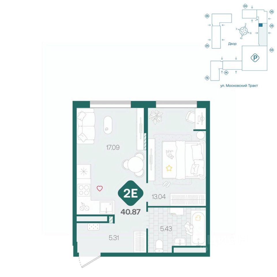 Удобная двухкомнатная квартира форматас отдельной спальней и большим санузлом. В каждой комнате выполнено зонирование: в спальне — на пространство для отдыха и работы, в кухне-гостиной — на гостевое и обеденное. В прихожей можно организовать гардеробную.