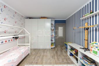 Продается трехкомнатная квартира в современном районе Тюмени — ЖК Ново-Патрушево, расположена на третьем этаже. Квартира в отличном состоянии с качественным ремонтом, выполненным с использованием материалов проверенных брендов: уложен ламинат Tarkett, установлены современные межкомнатные двери, смонтирован теплый пол в санузле и уложен керамогранит. В квартире просторная кухня-гостиная, три изолированные комнаты и облагороженный балкон. При продаже остаются кухонный гарнитур, два шкафа-купе, вся сантехника и водонагреватель, что позволяет заселиться сразу после покупки. Юридический статус объекта чистый — без обременений, долей и залогов.