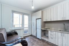 Ремонт выполнен из качественных материалов, в нейтральных тонах, вместительный кухонный гарнитур с варочной поверхностью и местом под духовой шкаф.