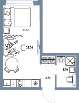 Продаётся студия в строящемся доме (Дом "Перспективный" (ГП-28)), срок сдачи: II-кв. 2028, общей площадью 25.06 кв.м., на 3 этаже. Новый микрорайон "Домашний" от группы компаний "Страна Девелопмент" расположен в Калининском округе Тюмени, в районе аэропорта "Плеханово".