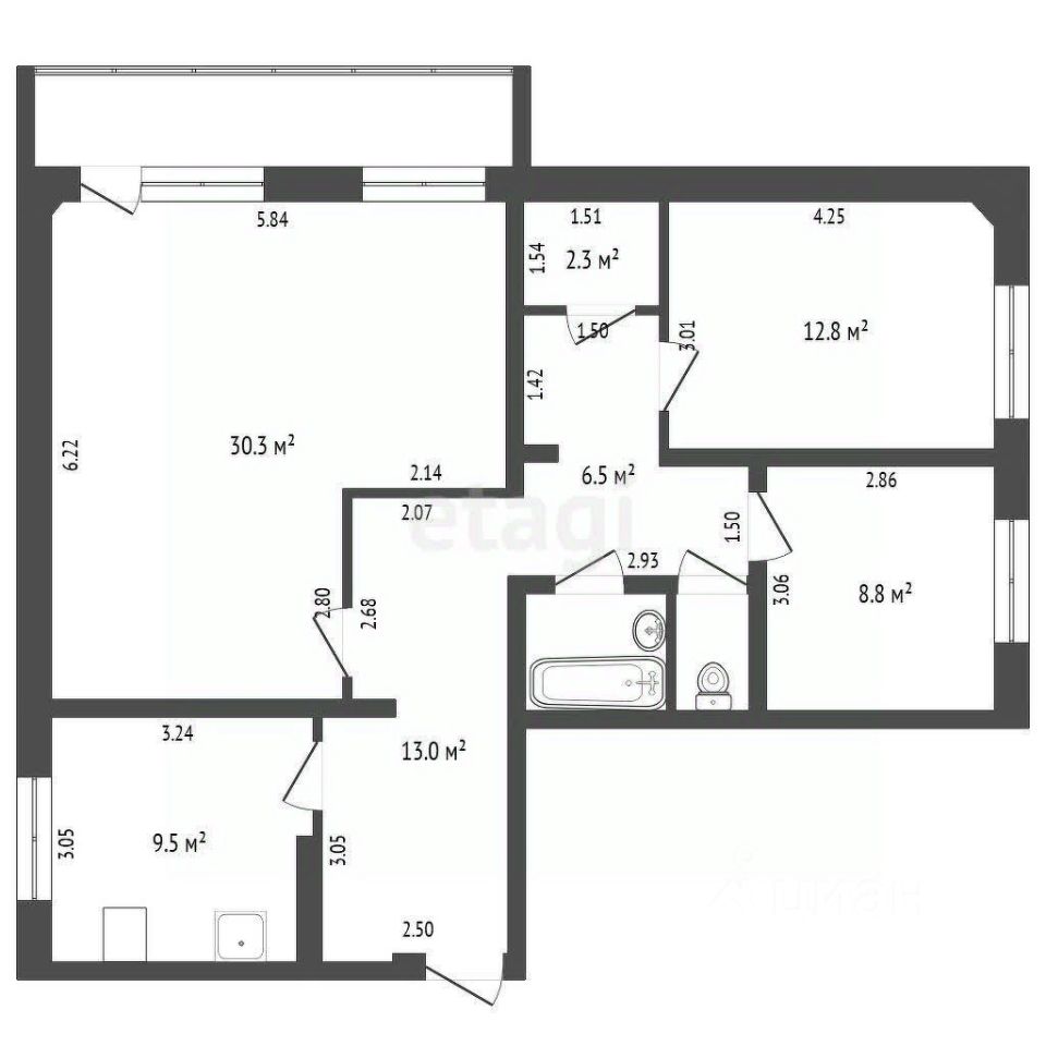 86,9 м²