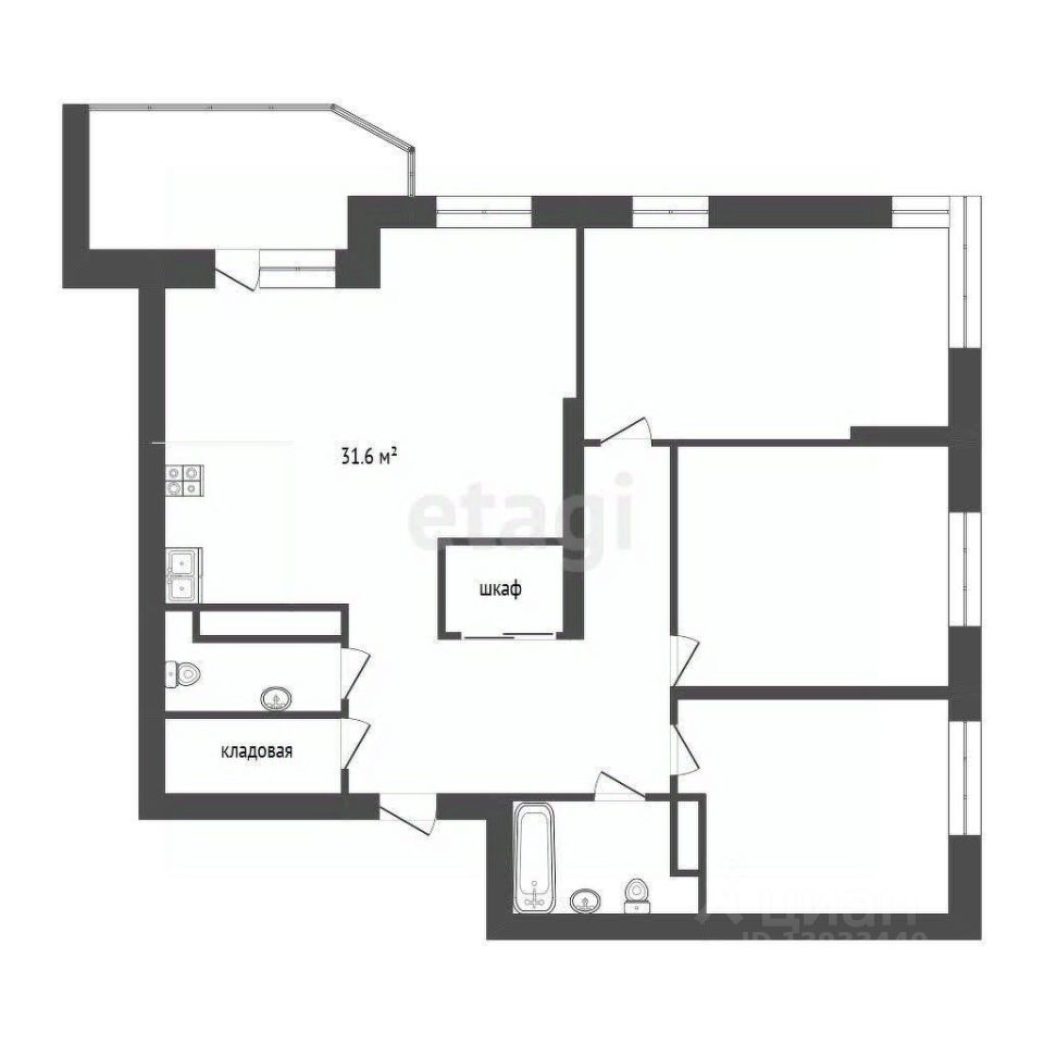 Просторная квартира с шикарной кухней-гостиной 31кв.м.