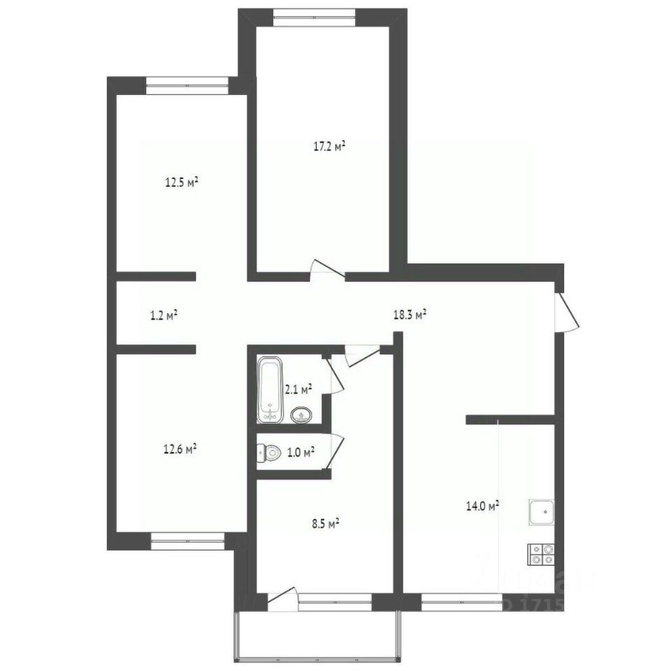 Площадь 87,4 кв.м.