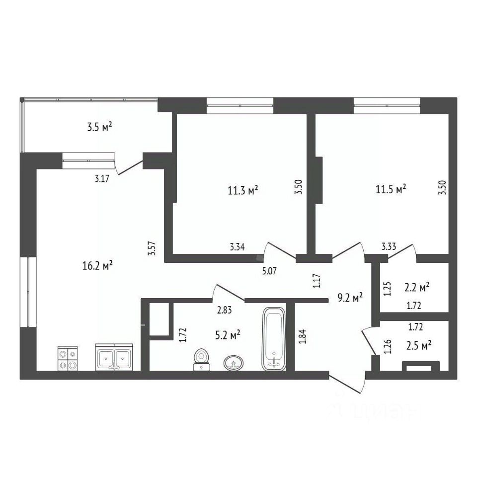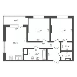 Объект выполнен в формате "две спальни + гостиная", что обеспечивает четкое зонирование пространства для семьи или работы.