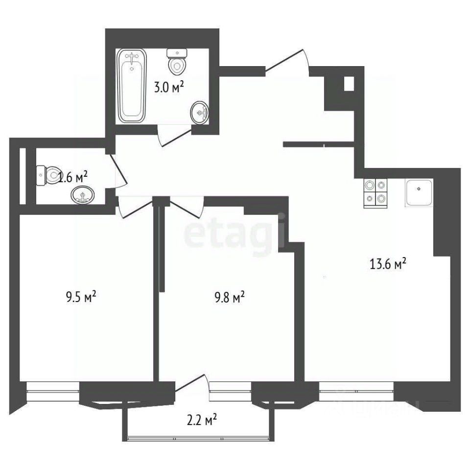 Продается квартира формата 2+ в ЖК Кедровый берег. Удобная планировка, кухня-гостиная и две изолированные комнаты, можно перепланировать на просторную 1+!!!