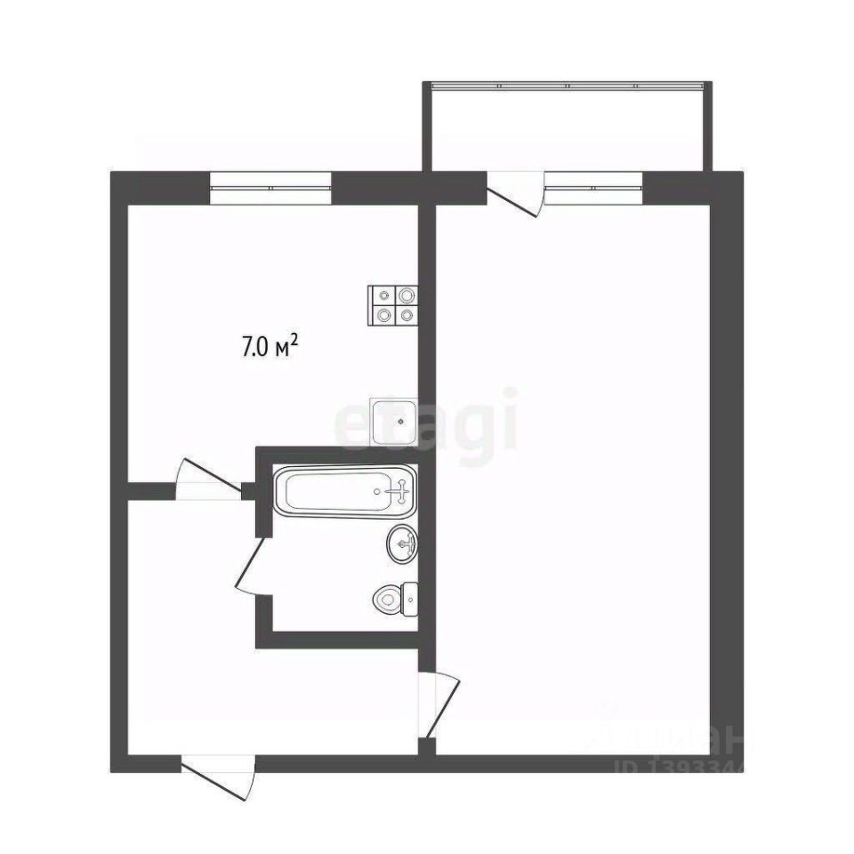 - Полноценная однокомнатная квартира: уютная кухня, просторная спальня с выходом на остекленный балкон.