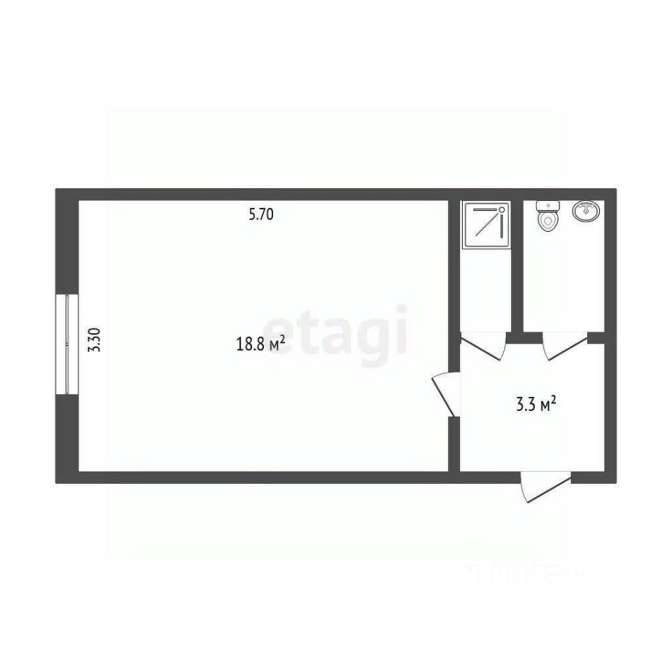 Общая площадь: 23 м2.