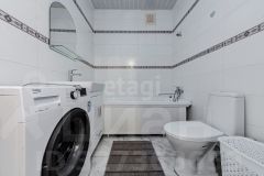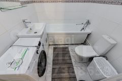 Санузел облицован светлой плиткой, создающей ощущение чистоты и простора.