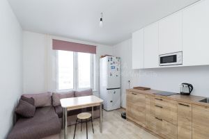В квартире выполнен современный ремонт от застройщика с использованием качественных отделочных материалов: ламинат, обои под покраску, натяжные потоки, межкомнатные двери, керамическая плитка в санузле.