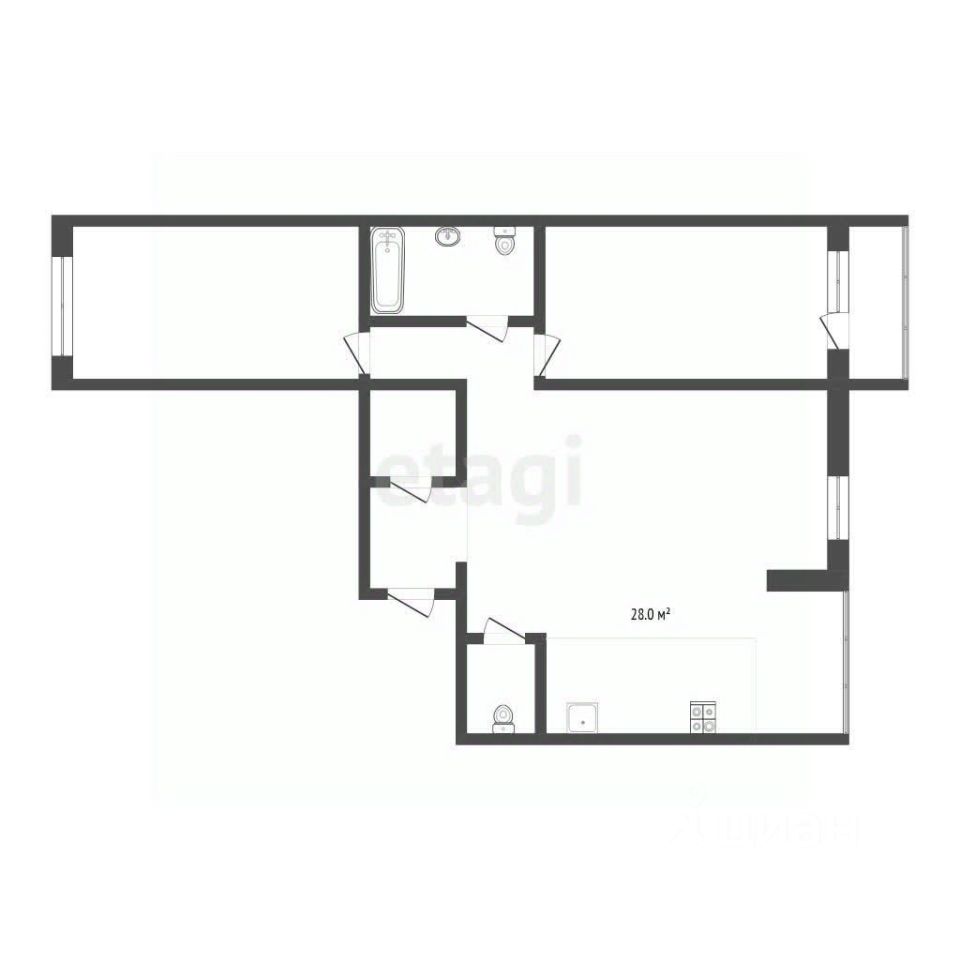 Квартира распашонка окна выходят на две стороны, огромная кухня гостиная 28 кв.м., 2 санузла и гардеробная