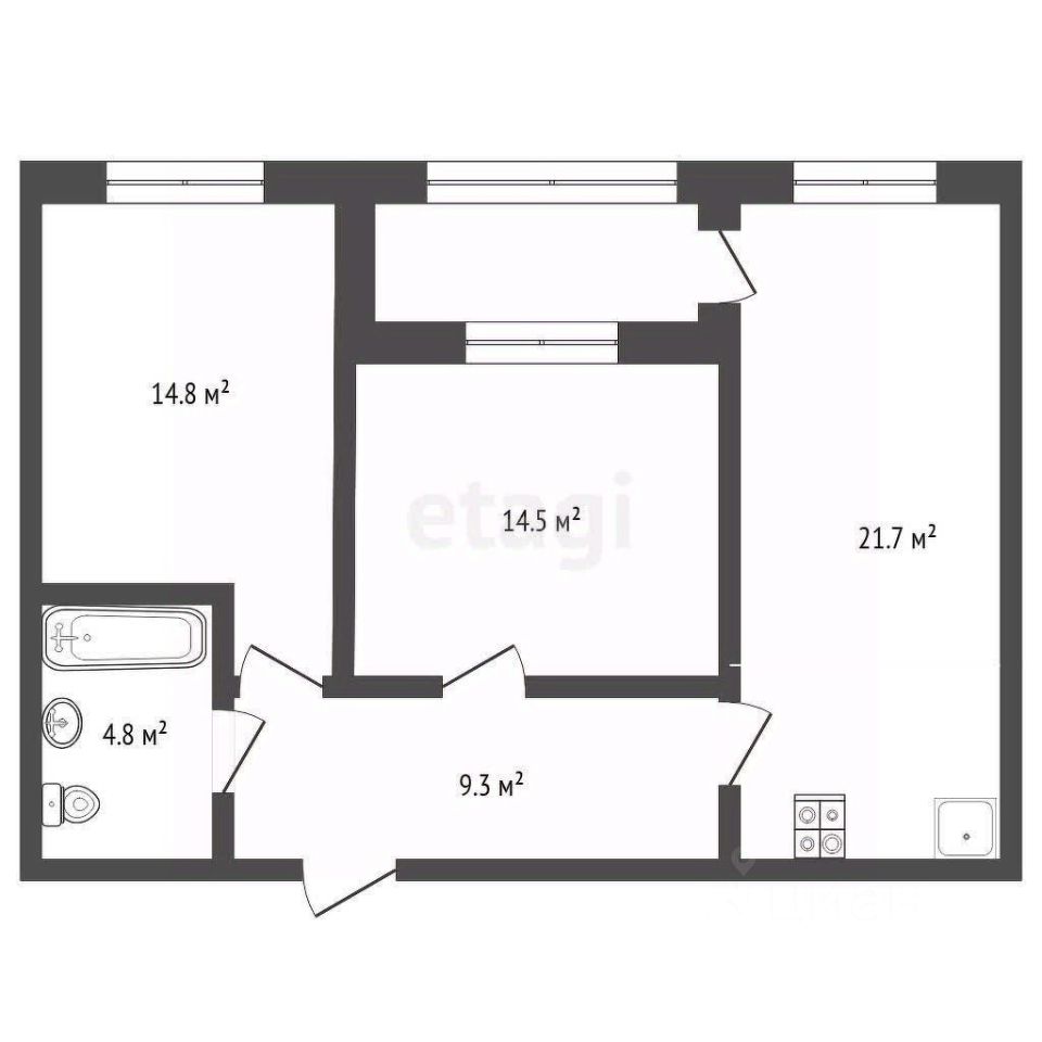 Квартира формата 2+ в ЖК Ожогино с большой кухней гостиной .