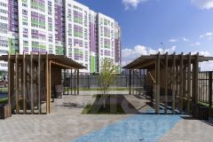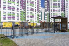 Територия дома закрытая, есть видеонаблюдение, в подъезде имеется колясочная. Во дворе детская и спортивная площадки. Парковка находится за пределами двора.