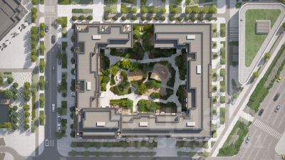 Замкнутый квартал высотой 8 этажей с 16-ти этажной башней-доминантой и двором на стилобате двухуровневого паркинга.