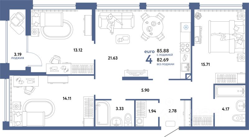 Продаётся 4-комнатная квартира в строящемся доме (Квартал Экологов (ГП-6)), срок сдачи: II-кв. 2026, общей площадью 85.88 кв.м., на 5 этаже. Новый жилой комплекс "Сердце Сибири" расположился в центре Тюмени в границах улиц 50 лет Октября-Пермякова-Харьковская.