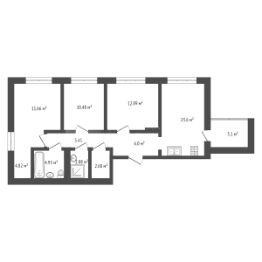 Уютная 3-комнатная квартира с кухней-гостиной 23,6 м² в ЖК УНО Зелёный квартал