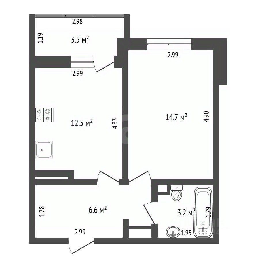• Просторную кухню с выходом на утепленный балкон, что значительно расширяет функциональное пространство и создает дополнительную зону для отдыха или рабочего места.
