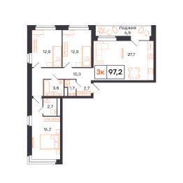 Продаётся 3-комнатная квартира в строящемся доме (Лот 1, секция B (Василия Малкова, 20)), срок сдачи: I-кв. 2027, общей площадью 97.2 кв.м., на 2 этаже. Новый жилой комплекс от застройщика СЗ КВАРТАЛ расположен в городе Тюмень на улице Бориса Прудаева.
