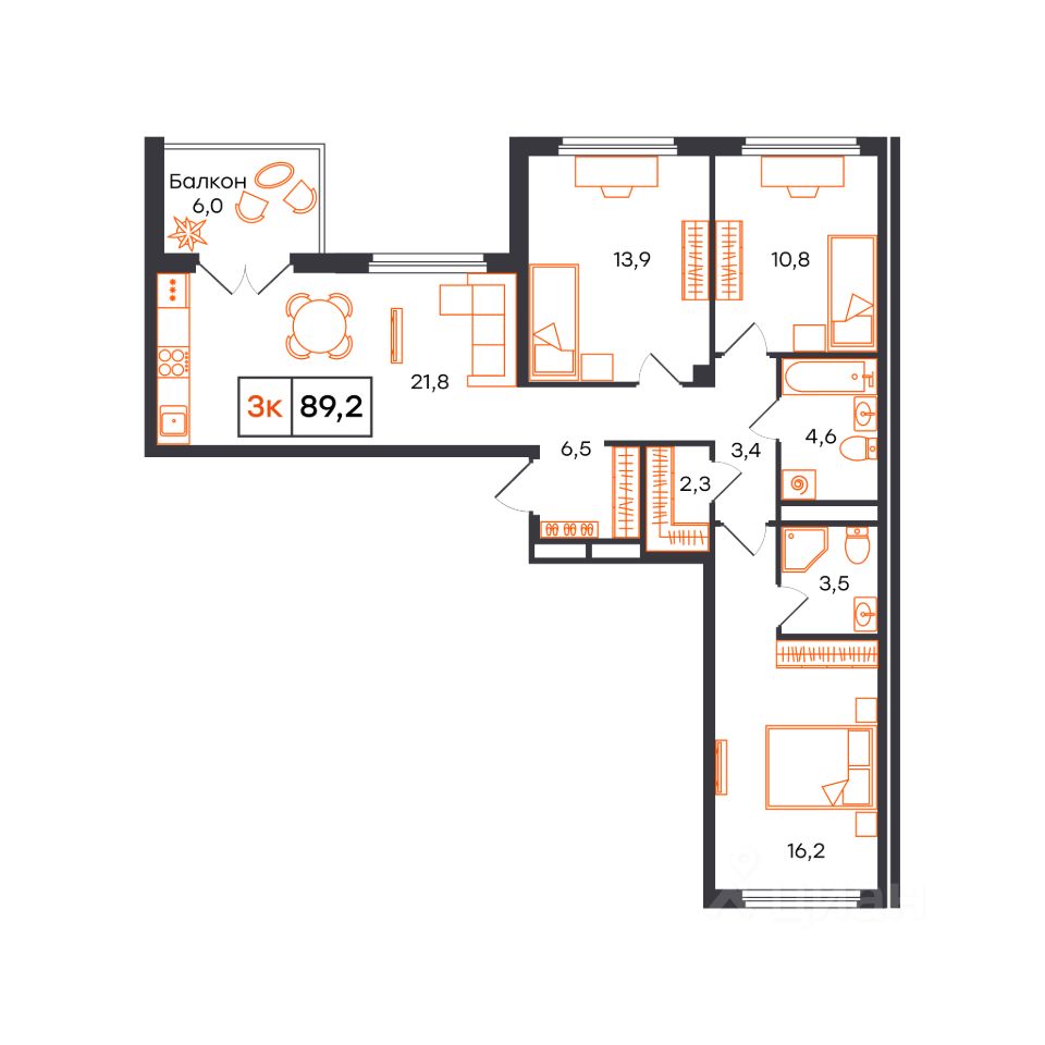 Продаётся 3-комнатная квартира в строящемся доме (Лот 1, секция E (Василия Малкова, 20к2)), срок сдачи: I-кв. 2027, общей площадью 89.2 кв.м., на 2 этаже. Новый жилой комплекс от застройщика СЗ КВАРТАЛ расположен в городе Тюмень на улице Бориса Прудаева.