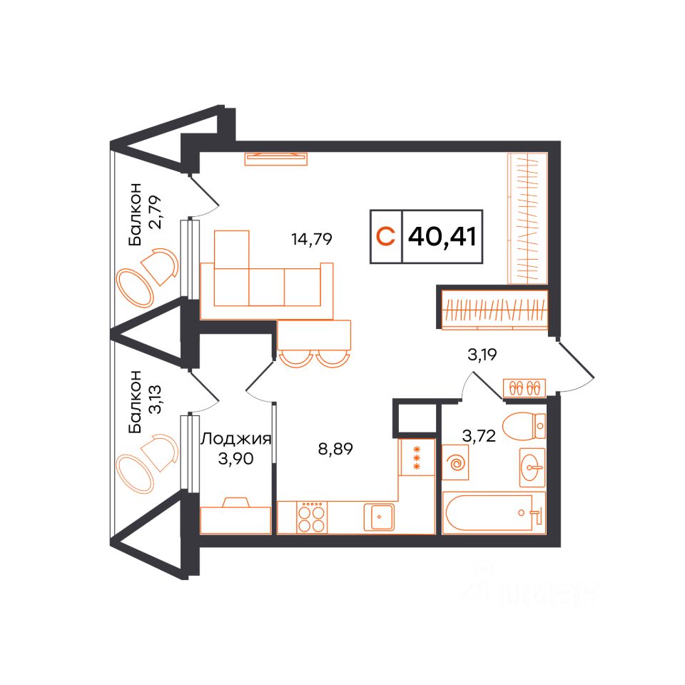 40,41 м²