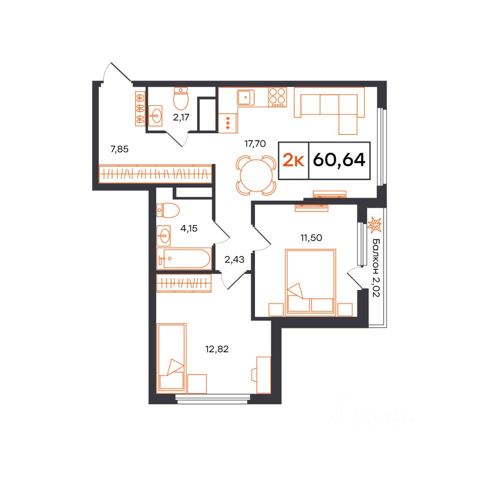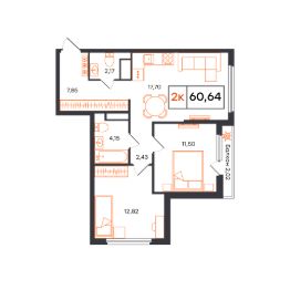 60,64 м²