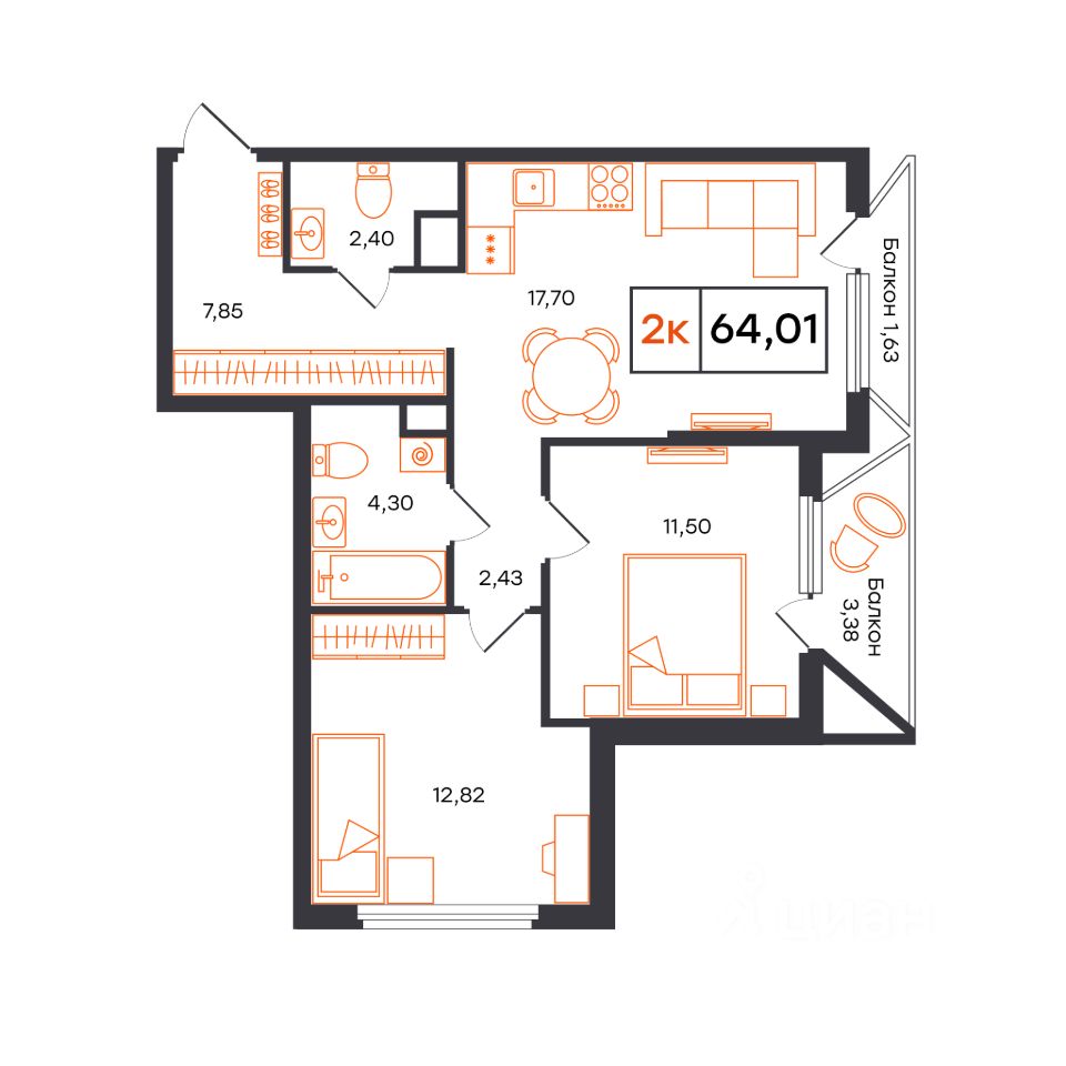 64,01 м²