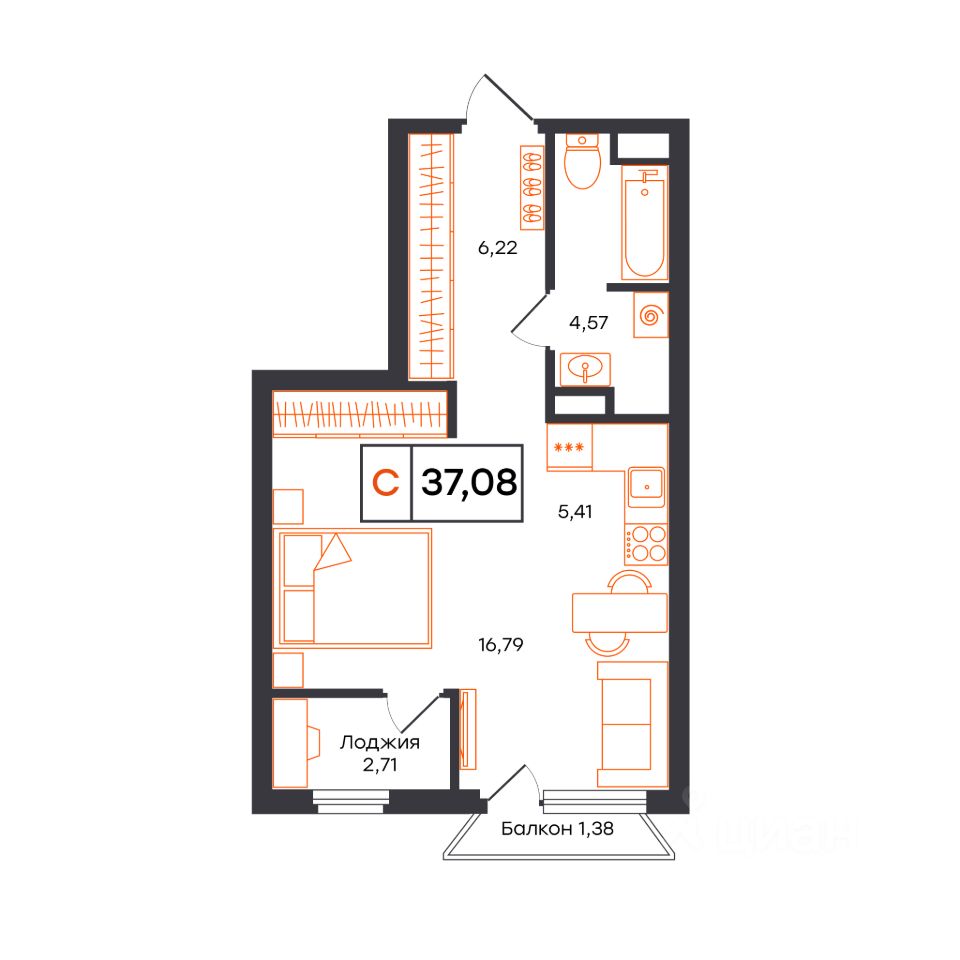 37,08 м²