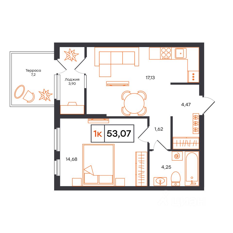 53,07 м²