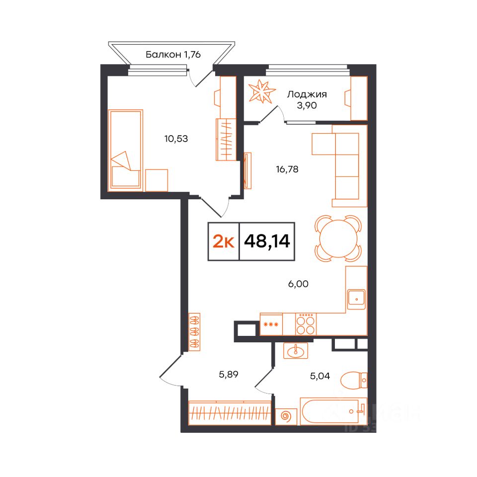 Общая площадь48,14 м²