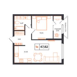 Продается 1-комн. квартира, 47,82 м²