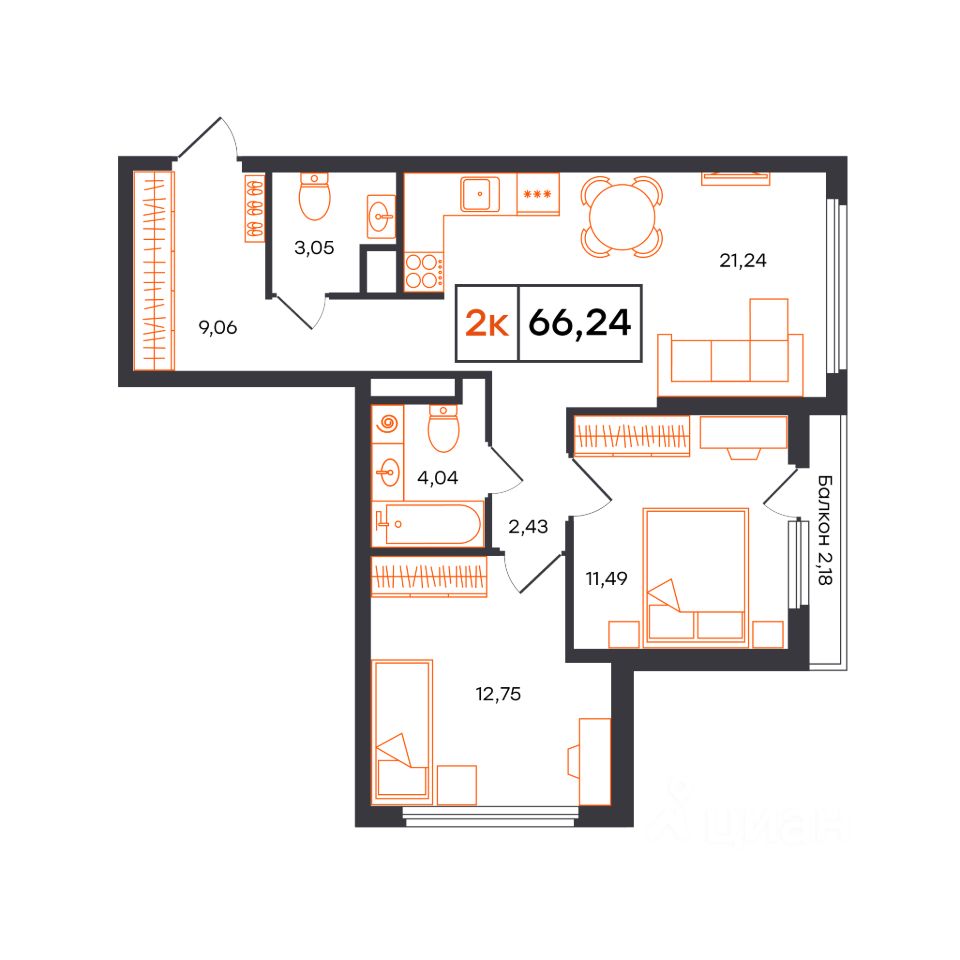 Общая площадь66,24 м²