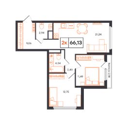 Продается 2-комн. квартира, 66,13 м²