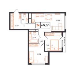 Продается 2-комн. квартира, 65,8 м²
