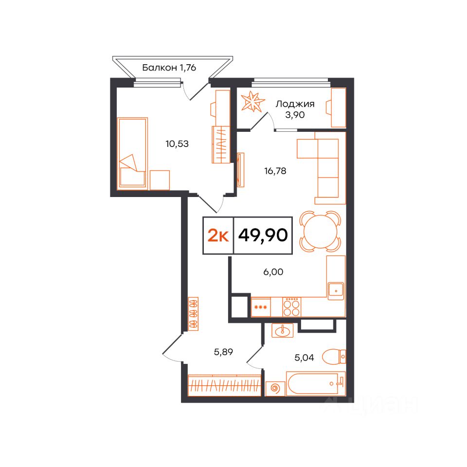 Общая площадь49,9 м²