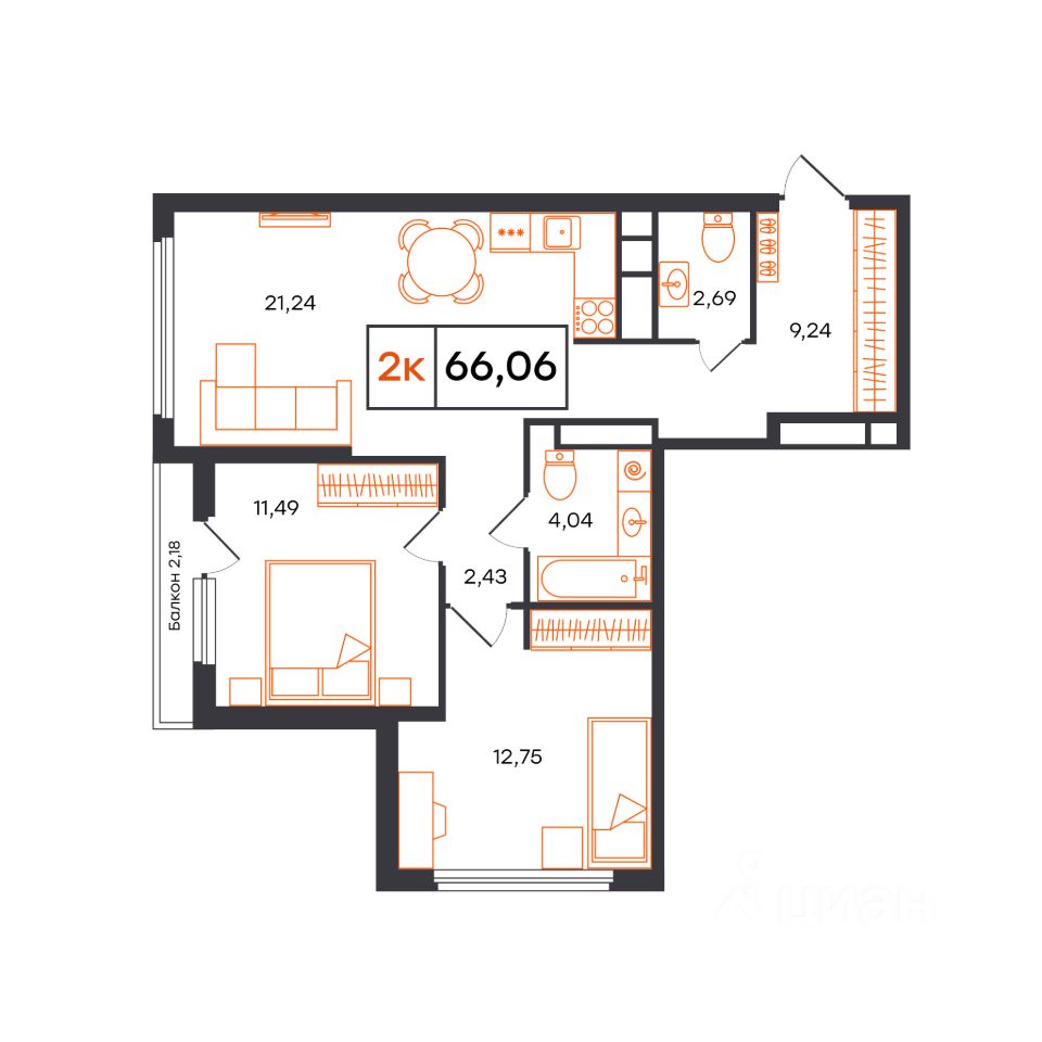 Продаётся 2-комнатная квартира в строящемся доме (Лот 2, секция В (Прудаева, 7с2)), срок сдачи: IV-кв. 2025, общей площадью 66.06 кв.м., на 17 этаже. Новый жилой комплекс от застройщика СЗ КВАРТАЛ расположен в городе Тюмень на улице Бориса Прудаева.