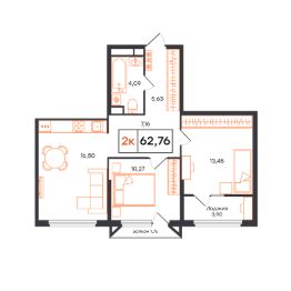 Общая площадь62,76 м²
